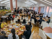今から食堂で昼食をいただきます。実行委員さんが、あいさつをしてくれます。