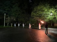 キャンプファイヤーが始まりました。実行委員さんが進行をしてくれます。火の神と火の...