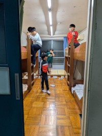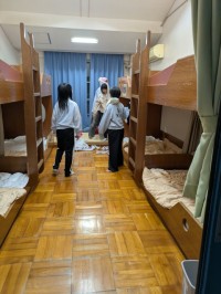 学級レク・クイズラリーを終え宿舎に戻ってきました。自分たちの部屋で、布団の用意を...
