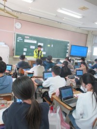 5年生が外国語の時間に,授業で使うレストランのメニューを作っていました。タブレッ...