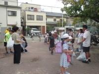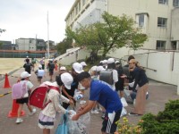 登校時、大勢のPTA実行委員の方が来てくださってエコキャップ運動を行いました。子...