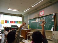 立ち幅跳びに挑戦しました。まずは練習。腕を大きく振ってコツをつかみます。