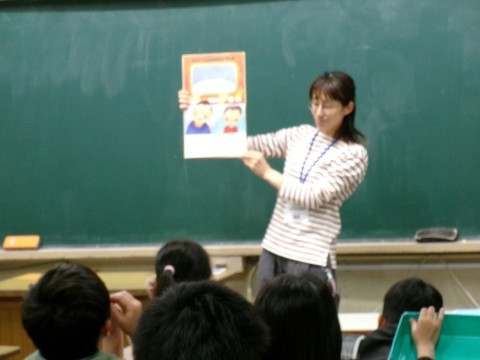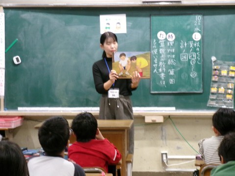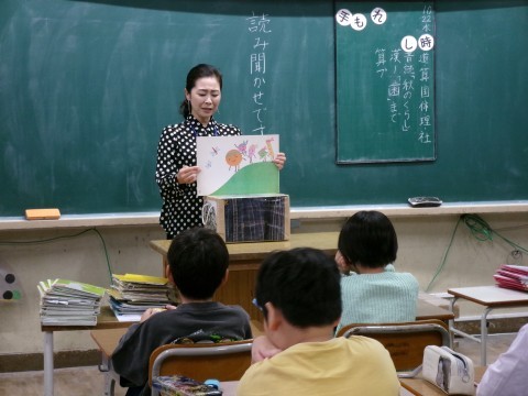今日は3年生の教室に,よみきかせ会の方々がやってきてくださいました。