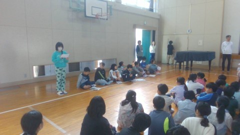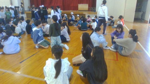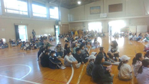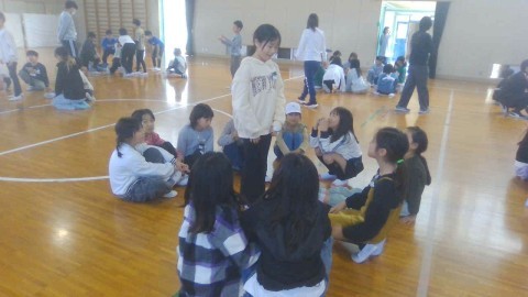 体育館で4年生とひまわり学級の交流会を行いました。