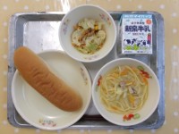 献立は「ご飯,牛乳、ワンタン,麻婆豆腐」でした。ワンタンは中華味のスープを吸っておいしくなります。青ねぎをいれて彩りよく仕上げました。