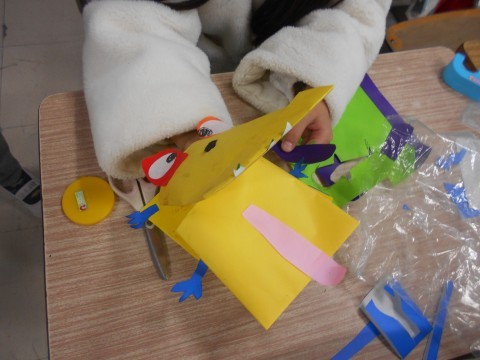 図工の授業では,「いっしょにあそぼうぱくぱっくん」を作っています。