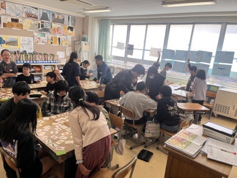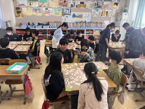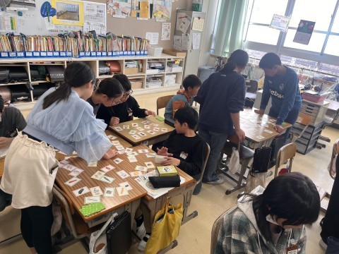 食品カルタをしました。それぞれの食品の栄養素や調理方法、旬の時期などの情報が書かれた読み札から絵札(食品)を選びます。少し難しかったですが、頑張ってチャレンジしてくれました。
