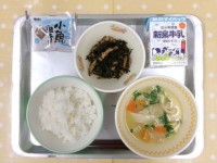 献立は「ご飯,牛乳、みそ汁,かれいのから揚げ,糸こんにゃくのうま煮」でした。かれいは白身で味の良い魚です。片栗粉をまぶしたから揚げをサクッと揚げて食べました。