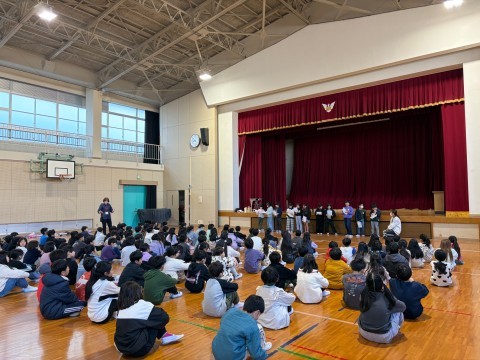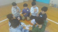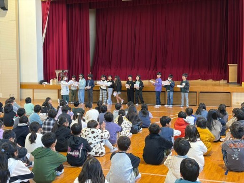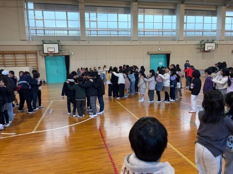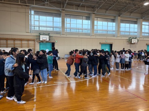 姿勢よく話を聞くことができ,話の後は全員でじゃんけん列車をし,楽しく学年集会を終え,3学期を気持ちよく迎えることができそうです。