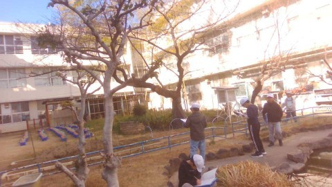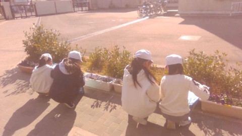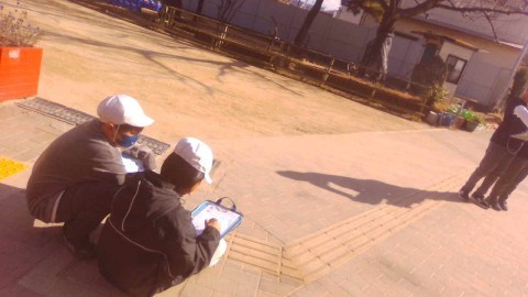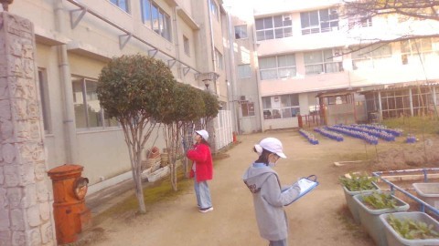今日は理科「冬の生き物」の学習で中庭の生き物を観察しました。