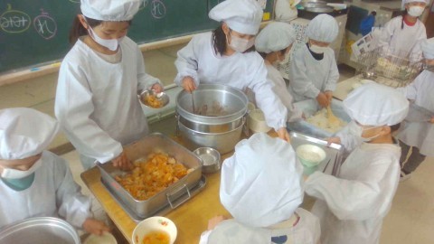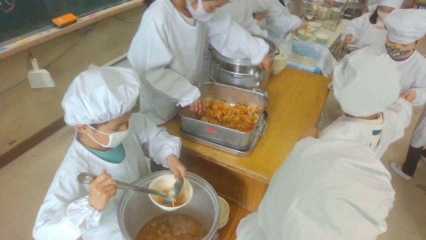 先週より給食が始まりました。今週はねこ当番の初日です。3学期になると,配膳もかなり上達しました。テキパキと働く姿に日々の成長を感じます。