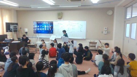 ゲームの時間には,クラス対抗のクイズをおこないました。「1番小さい犬種は?」や「1番小さい都道府県は?」などがありました。どんな問題があったか,また