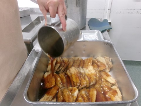 節分献立は「ご飯,牛乳、豚汁,いわしのかば焼き風,福豆」でした。2月3日は節分の日です。節分献立では,鰯(いわし)のかば焼き風と福豆を食べました。