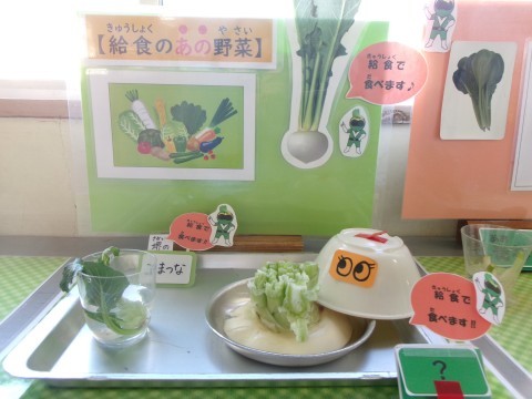 かぶは「むらくも汁」に,堺市産の小松菜は「かむかむ堺っ子丼」に入っていました。