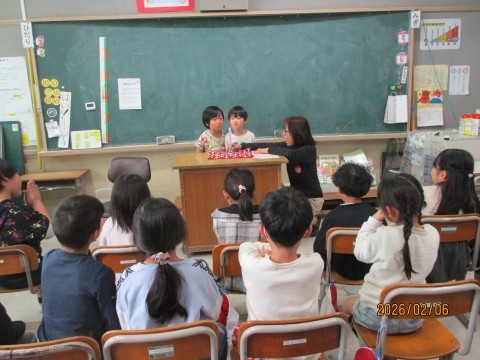 今日の2時間目は、「おはなしふくろうの会」のみなさんに