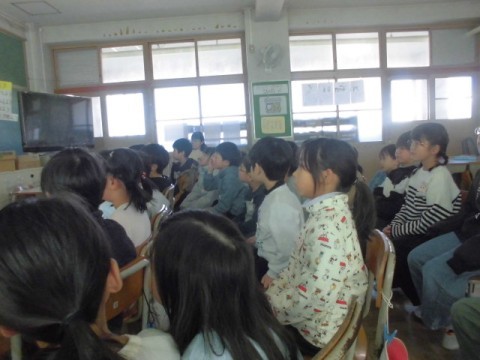 おはなしふくろうの会の人たちの,お話を聞きました。