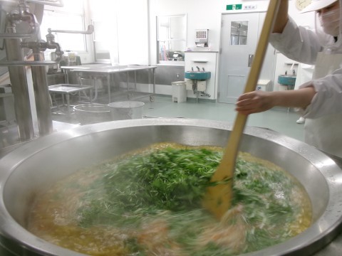 献立は「ご飯,牛乳、はりはりうどん,かき揚げ,昆布のつくだ煮」でした。大阪府の郷土料理「ハリハリ鍋」に因んで,水菜がはいった「はりはりうどん」をつくりました。「かき揚げと一緒に食べたらおいしいで~♪」と4年生。かき揚げに入れた春菊の苦みがいいお味を出していました。