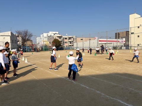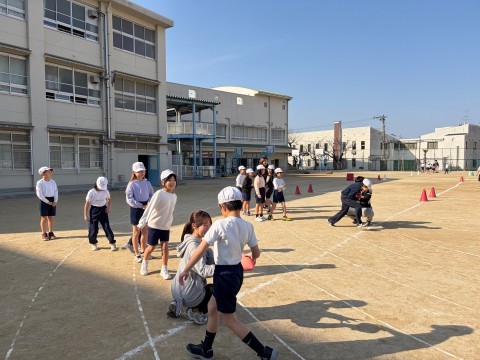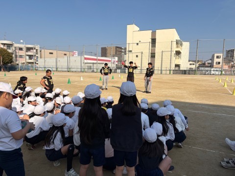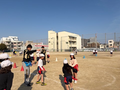 今日は3年生の体育に大阪公立大学の学生がフラッグフットボールの授業をしてくれました。