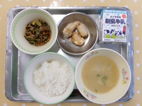 献立は「ご飯,牛乳、チキン南蛮,鉄分たっぷり煮」でした。鉄分には体の中に酸素を届ける大切な役割があります。「鉄分たっぷり煮」は,大豆やうす揚げ・ひじき・小松菜・切干大根など鉄分を多く含む食材を使って煮物をつくりました。「これ食べたら元気が出てきた~♪」と4年生。ご飯が欲しくなるおかずです。