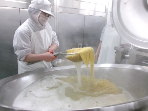 献立は「ミニコッペパン,牛乳,和風スパゲティ,豆腐サラダ」でした。大阪しろ菜を入れて,和風スパゲティをつくりました。えのきだけやしめじもはいっています。しょうゆ味のスパゲティです。