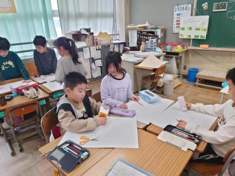 じゃあ,はこのことを知っていこうということで,今日ははこの面を画用紙に写し取ってみました。