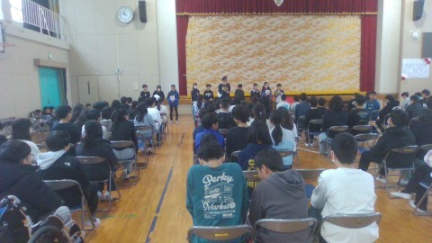 最後の学年集会を行いました。6年間を振り返った百マス作文を発表し,そのあとは,教科などでお世話になった先生へのプレゼント,サプライズで動画を流しました。最後に担任の先生からの言葉を聞きました。みんなはいろんな人に愛されていて,これからがんばってほしいというメッセージを先生方から受け取りました。涙あり笑いありの素敵な最後の学年集会となりました。