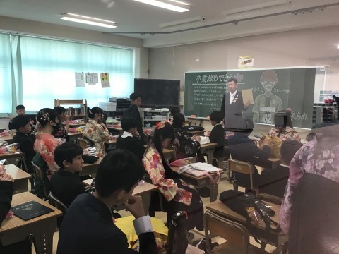 令和7年度 第53回 卒業証書授与式11 公開日 2026/03/17 更新日 2026/03/17 6年 各クラスの最後のホームルームでは、担任の先生から卒業生一人ひとりに温かい言葉が伝えられ、教室には穏やかな時間が流れました。小学校生活の締めくくりにふさわしい、心に残るひとときとなりました。 6年生