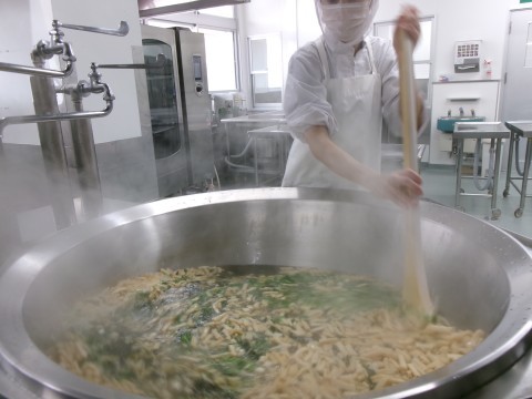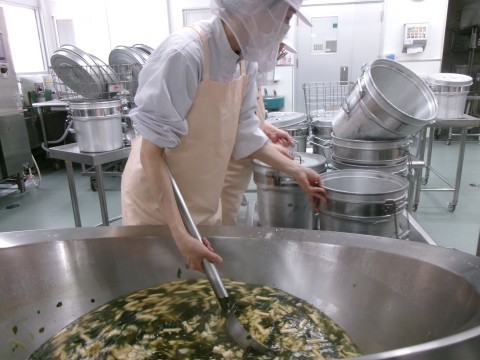 献立は「ご飯,牛乳、若竹汁,鮭のマヨみそ焼き,きんぴらごぼう」でした。若竹汁は,春先の新わかめと旬のたけのこがはいった汁物です。昆布と削り節でとったおいしい出汁をつかってつくりました。