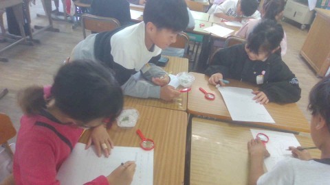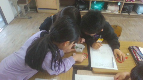 3年生 なにかのタマゴを観察しよう 公開日 2026/04/27 更新日 2026/04/27 3年 3年生 理科の学習でタマゴを観察しました。虫メガネを使って観察しました。「変なにおいの葉っぱにタマゴがついてる!」「このタマゴふたごかもしれない!」「こっちはもうタマゴからかえってる!」など,つぶやきながらよく見て観察することができました!このタマゴは何に育つのか・・・これからが楽しみですね。 +1 3年生
