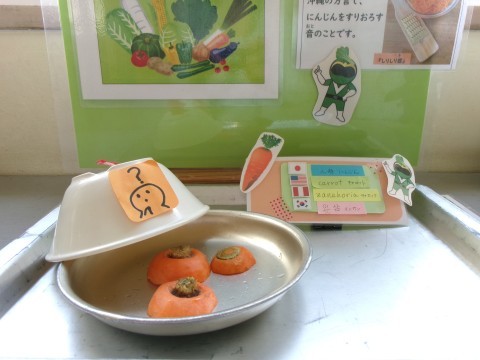 にんじんをせん切りにして「にんじんしりしり」をつくりました。