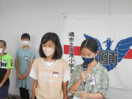 全校朝礼 挨拶運動・児童会新聞 7/11