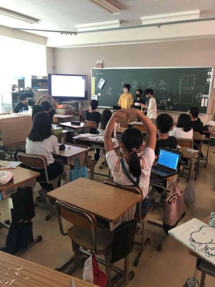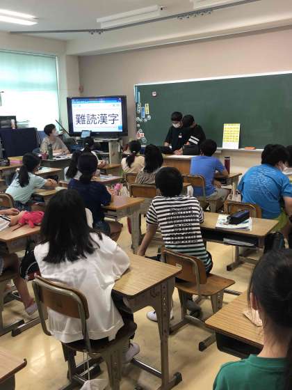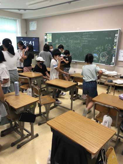 写真は1組(〇×クイズ),2組(ウィンクキラー),3組(漢字クイズ)をしているところの様子です。