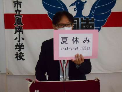 松島先生から,挨拶や夏休みの過ごし方についてお話がありました。