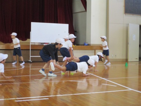 動物や文房具を表現し,手を広げで自分の体重を支えることにチャレンジしました。