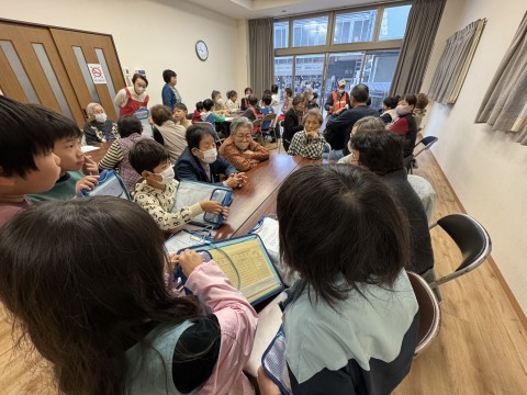 地域の各会館に分かれて、世代間交流を行いました。日々,見守ってくださっている地域のおじいちゃん,おばあちゃんたちとたくさん交流することができました。