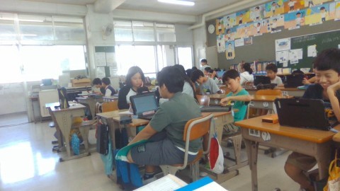 また,自分たちの音読の様子をタブレットで撮影し,後でしっかりと振り返りました。