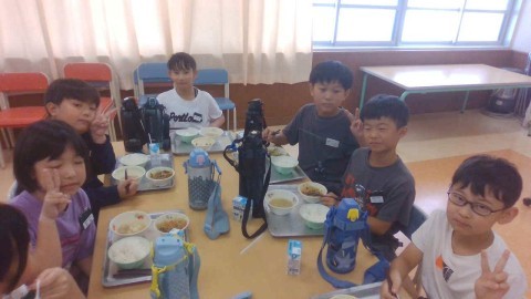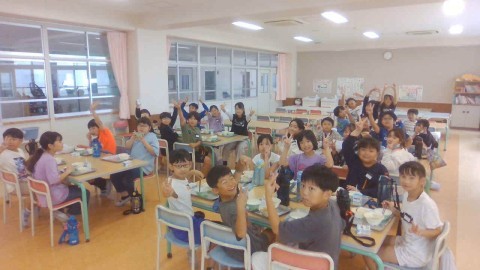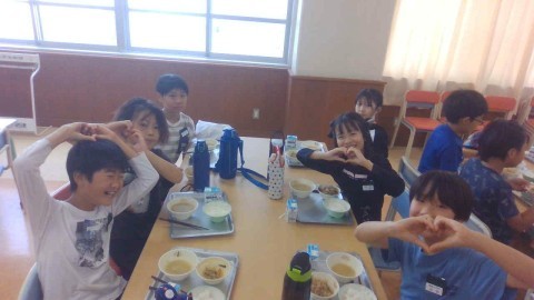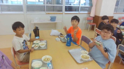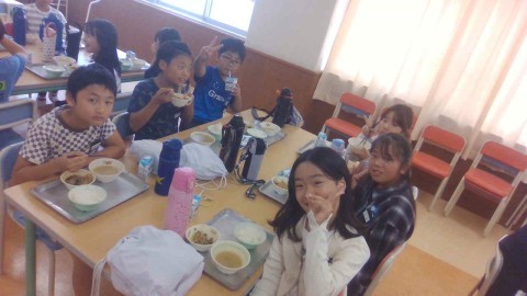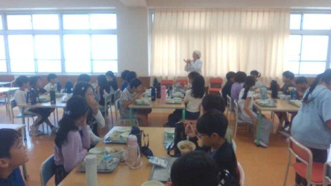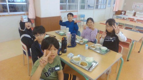 今日の給食はランチルームで楽しく美味しくいただきました!