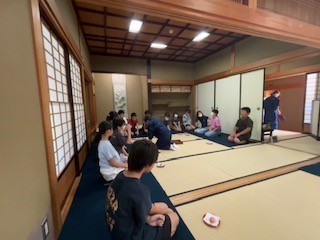 茶の湯体験では、おもに礼儀作法について学びました。茶室への入り方、靴のそろえ方、座り方、お菓子やお茶のいただき方など様々な礼儀があり、ひとつひとつ丁寧に教えていただきました。お菓子とお茶を飲んで和を感じることができました。