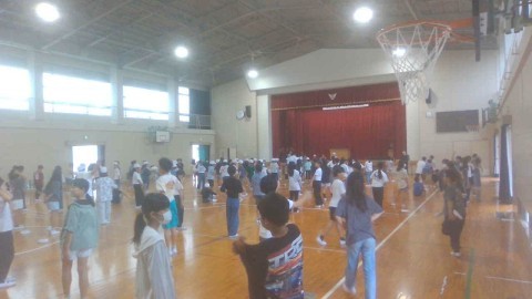 学年集会の最後には実行委員の考えたゲームで心をほぐします。今回のゲームは「言うこと一緒やること逆」というゲームでした。
