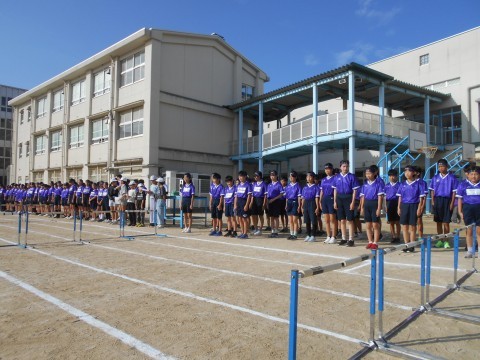 6年生の連合運動会激励会を行いました。1年生から5年生までの児童の皆さんの前で各種目の代表の人が競技をしてみました。1年生から5年生の見ている人からは,「おぉ~」「すごい」などの声がありました。本番も練習の成果を発揮して自己記録を更新してほしいと思います。