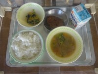 今日の給食は, ・ごはん ・牛乳 ・ポークカレーライス ・豆とひじきのサラダ ...