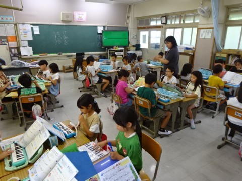 音楽で「かっこう」を鍵盤ハーモニカで弾く練習をしました。また、2拍子と3拍子の曲の拍を打つ練習をしました。