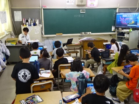 漢字ドリルの課題が終わった後、タブレットの操作練習に取り組みました。