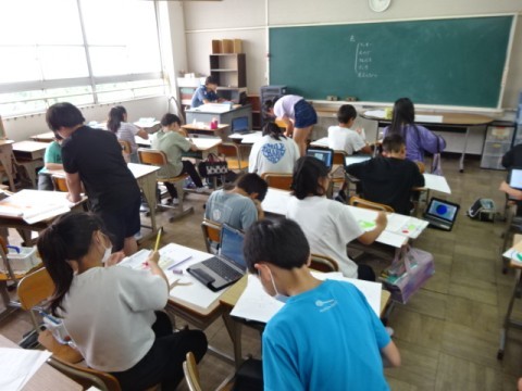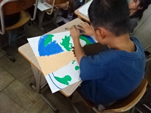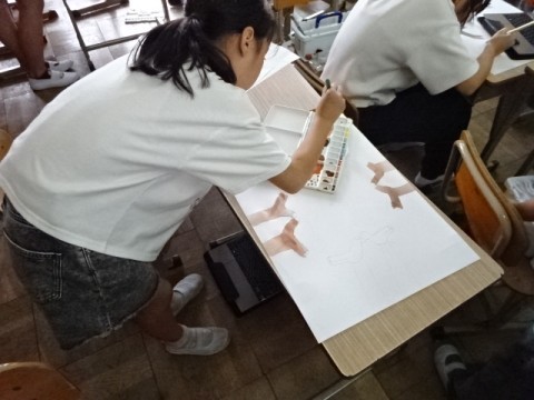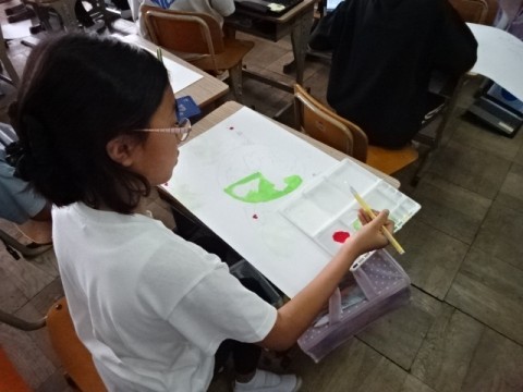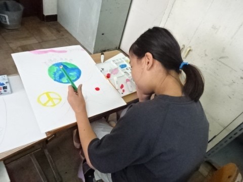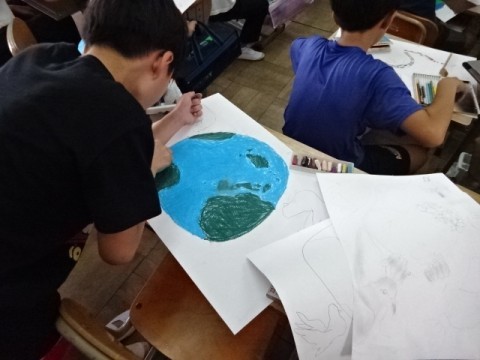 図工で平和ポスターづくりに取り組んでいます。順調に進んでいます。完成間近です。