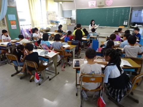 国語で「お手紙」の学習をしています。初めから終わりまで全文を読んでから「初めの感想」を書きました。登場人物の様子や気持ちを読み取っていきます。