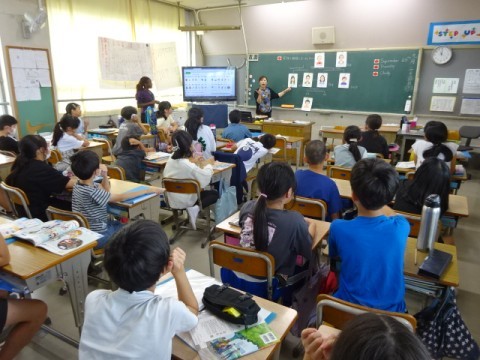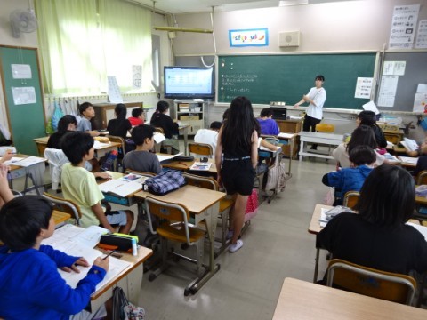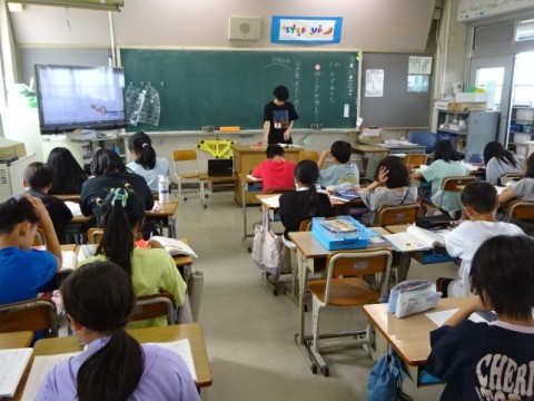 算数では「分数と小数、整数の関係」の学習をしています。基準量と比較量を捉えた後に立式し、分数で答えを求めていきました。