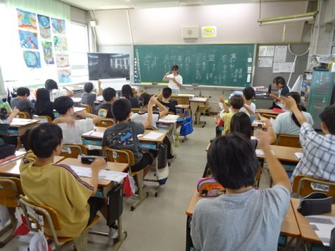 国語で「やまなし」の学習をしています。なぜ「やまなし」という題名にしたのかを考え、意見を交流しました。