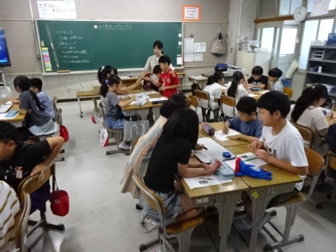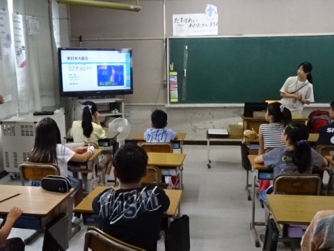 社会科で「自然災害から人々を守る」の学習をしています。先生が小学生の時に体験した東日本大震災での経験を聞き,「マイ防災バッグをつくろう」をめあてに自分たちの防災バッグの中に入れておくべき物について考えました。