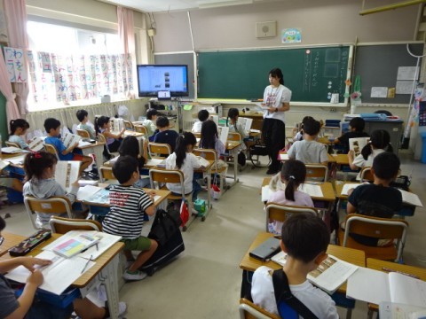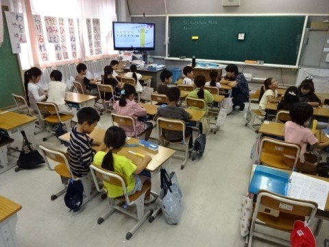 国語では「うみの かくれんぼ」の学習をしています。しっかりと声を出して本読みし,内容の読み取りをしていきました。