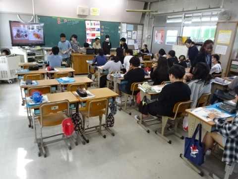 外国語の学習ではこれまでの学習を思い出しながら先生体験をしました。もちろん英語で問いかけたり,英語で指示を出したりしました。